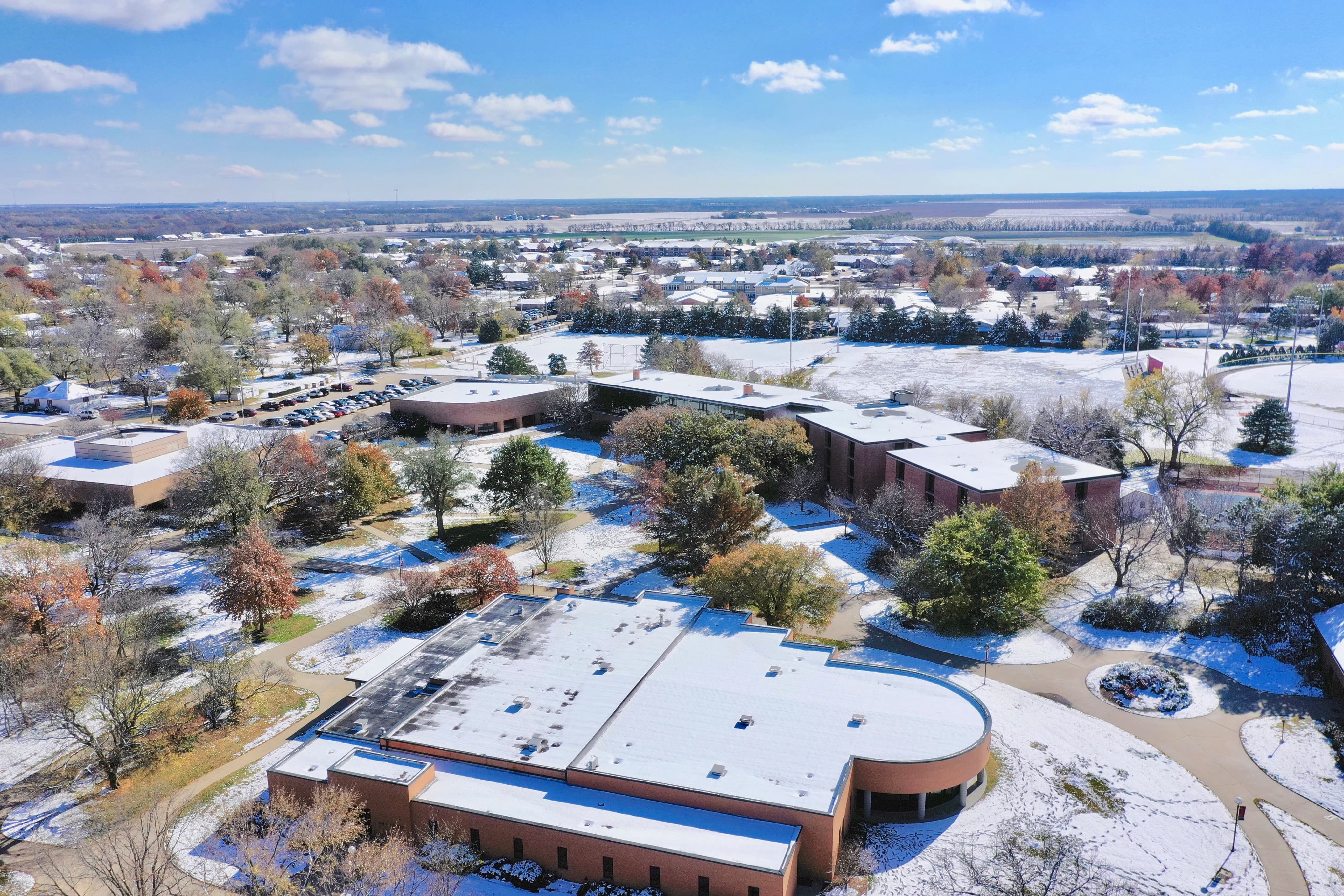 Yost Center houses our recently renovated main gymnasium and team room. Thanks to the Be Greater capital campaign completed in the fall of 2019, Yost Center also offers a newly constructed fitness center, athletics office suite and a west entrance and lobby that serves as a welcoming front door to our community. Also a part of the Be Greater campaign was construction of the Bess Mullet softball field, located at the southeast corner of campus near Bontrager Student Center. Be sure to cheer on Lark athletics this spring by watching our athletic competitions via live stream on the Larks website.