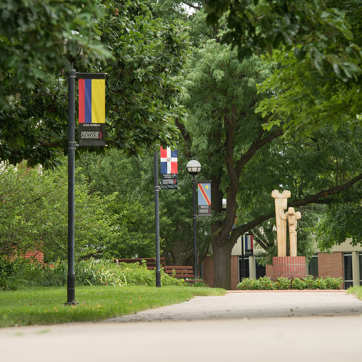 Just days before the official kick-off of the 2018-19 year, Hesston College unveiled a new campus feature – the Global Pathway. This pathway is a one-third mile sidewalk loop running between Erb Hall and Keim Center, formerly Northlawn. The pathway consists of light pole banners that highlight the many flags from countries and U.S. territories that make up our student body. This is just one way Hesston College is deepening their global engagement.